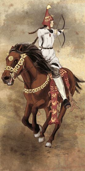 Rekonstruktionszeichnung zur Amazonenausstellung, nach Grabfunden