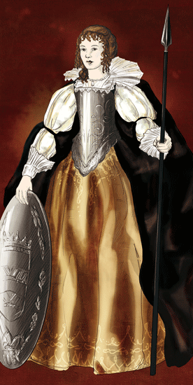 Barocke Amazone: Höfische Dame mit allegorischem Amazonengewand